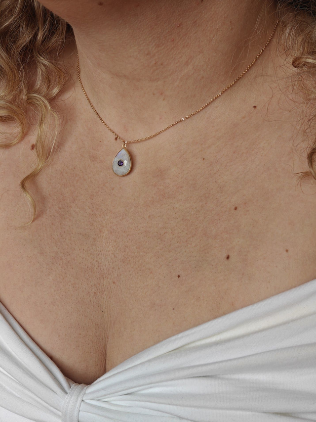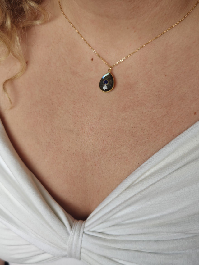 Collier Goutte en pierres naturelles, avec chaîne plaquée Or 18K orné d'un précieux pendentif en pierres naturelles facettées, doré à l'or fin.