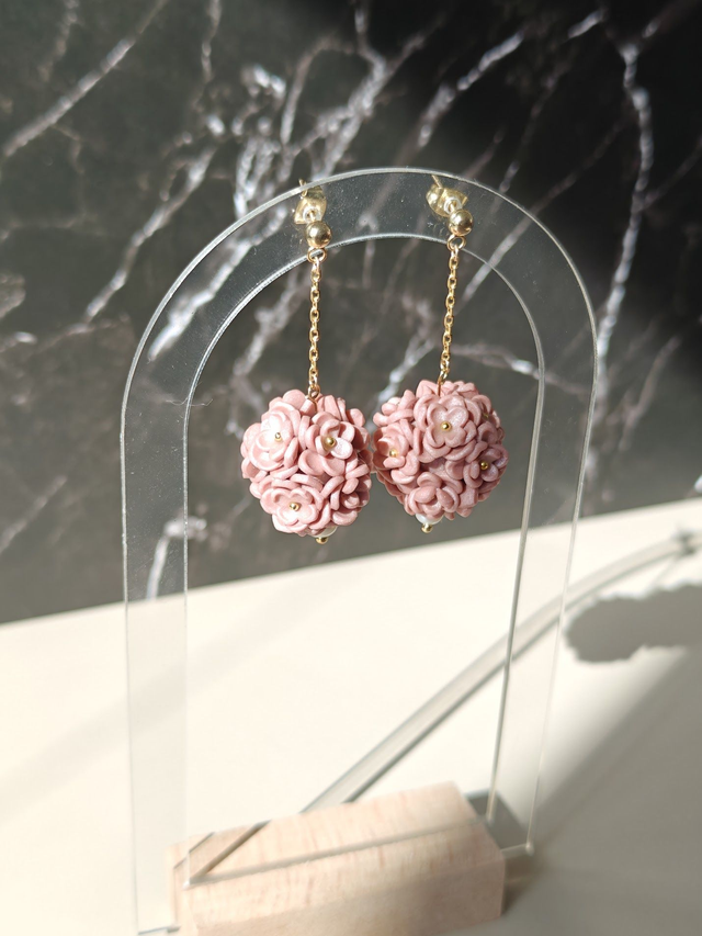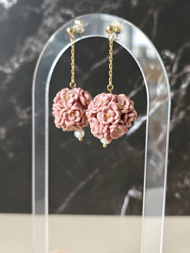 Chaque fleur est façonnée à la main individuellement puis cuite et assemblée sur sa chaîne ou son clou.